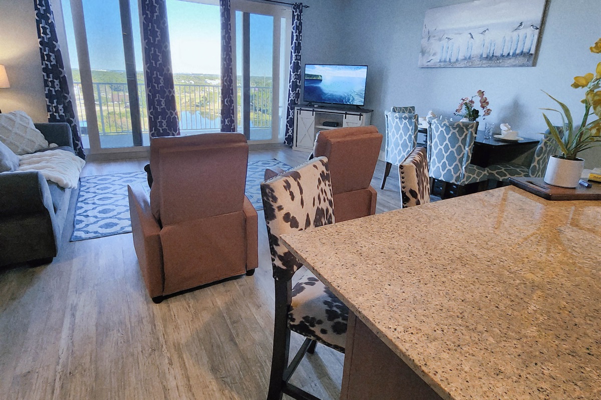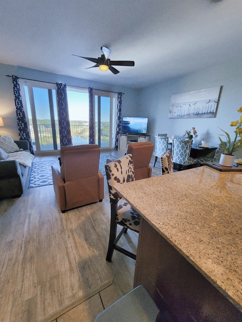 Completely Remodeled and Beautifully Furnished Condo, located within a short walk to the beach. Lake town Wharf offers THE Resort style vacation, from the five unique pools, 52,000 square feet of lakefront boardwalk, a fully equipped fitness center, covered parking, miniature golf, an on-site market/bistro, on-site dining options and flexible meeting spaces for conferences, to weddings and other group functions. There is really no reason to leave, other than the beach experience you can find across the street.