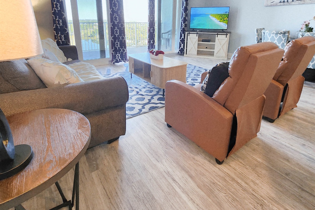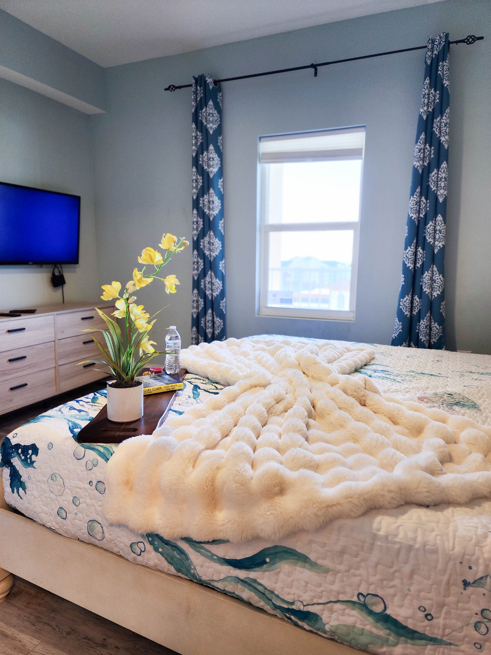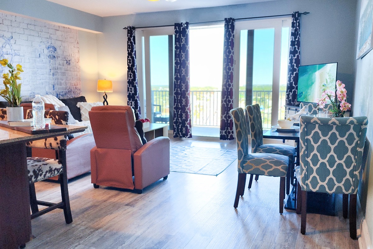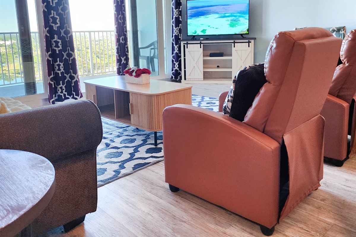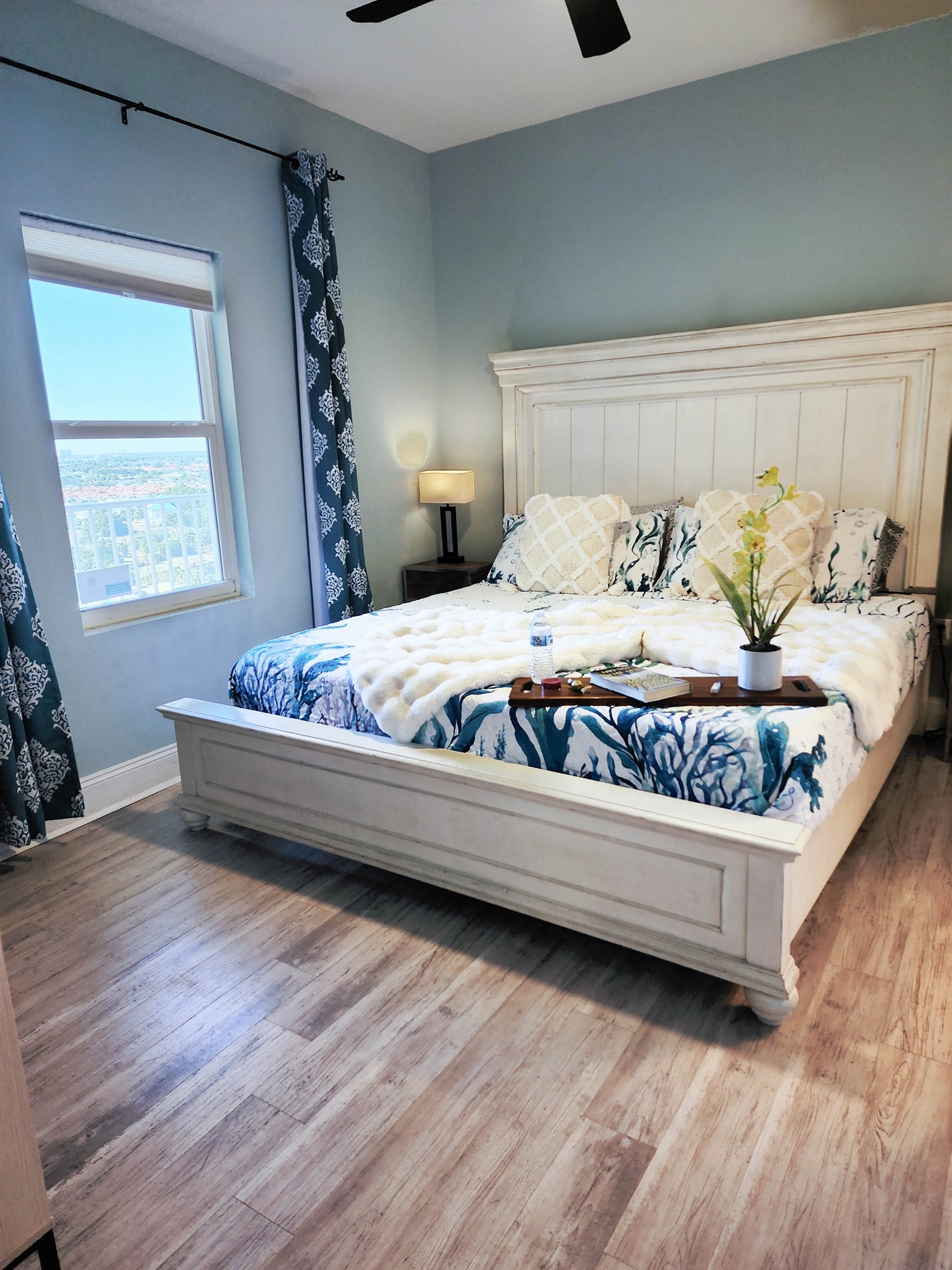 The unit has been decorated extremely tastefully and no expense has been spared for the comfort of our guests. The kitchen is fully equipped with everything you will need. Themaster bedroom has an extremely comfortable King Bed and en suite Bathroom. The bunk area is secluded and has brand new mattresses and a private bathroom. The living area is extremely spacious and open, it offers a sleeper sofa couch and brand new furniture for he ultimate luxury feel. The condo is 1050 sq.ft and it is located in the best floor- 14th. RIght across the 10th level you will find one of the best pools in the complex, hidden away and extremely close, so no elevators needed to access it.