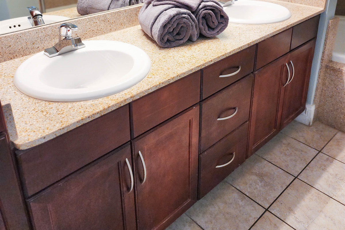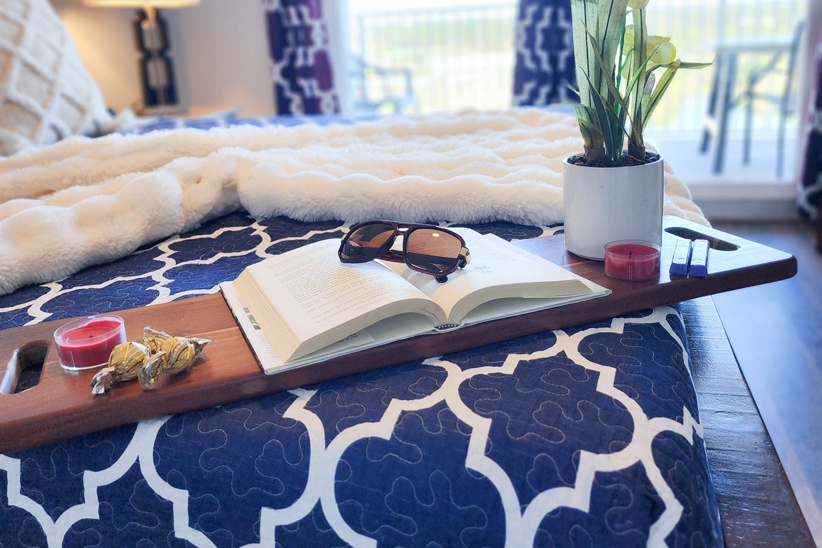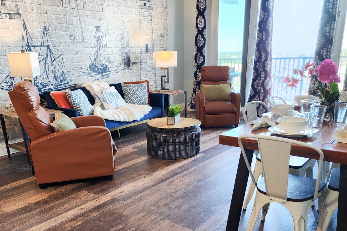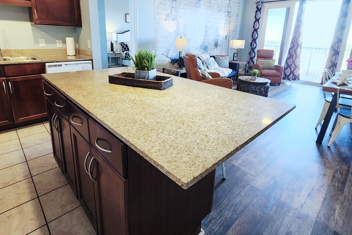 The unit has been beautifully decorated and offers the perfect setting for a beach getaway. You will find this spacious kitchen to flow perfectly with the open and spacious living room. The comfort of the fluffy furniture and the clean design will make you feel at home. The kitchen is very well stocked, it offers anything and everything you may need to cook a three course meal. the bunk area is secluded and has a private bathroom accessible right across. The master suite has the most comfortable bed and perfect shades to guarantee a good night sleep after a long day at the beach. The private master bathroom and extra large closet space complete the perfect ambience for comfortable stay.