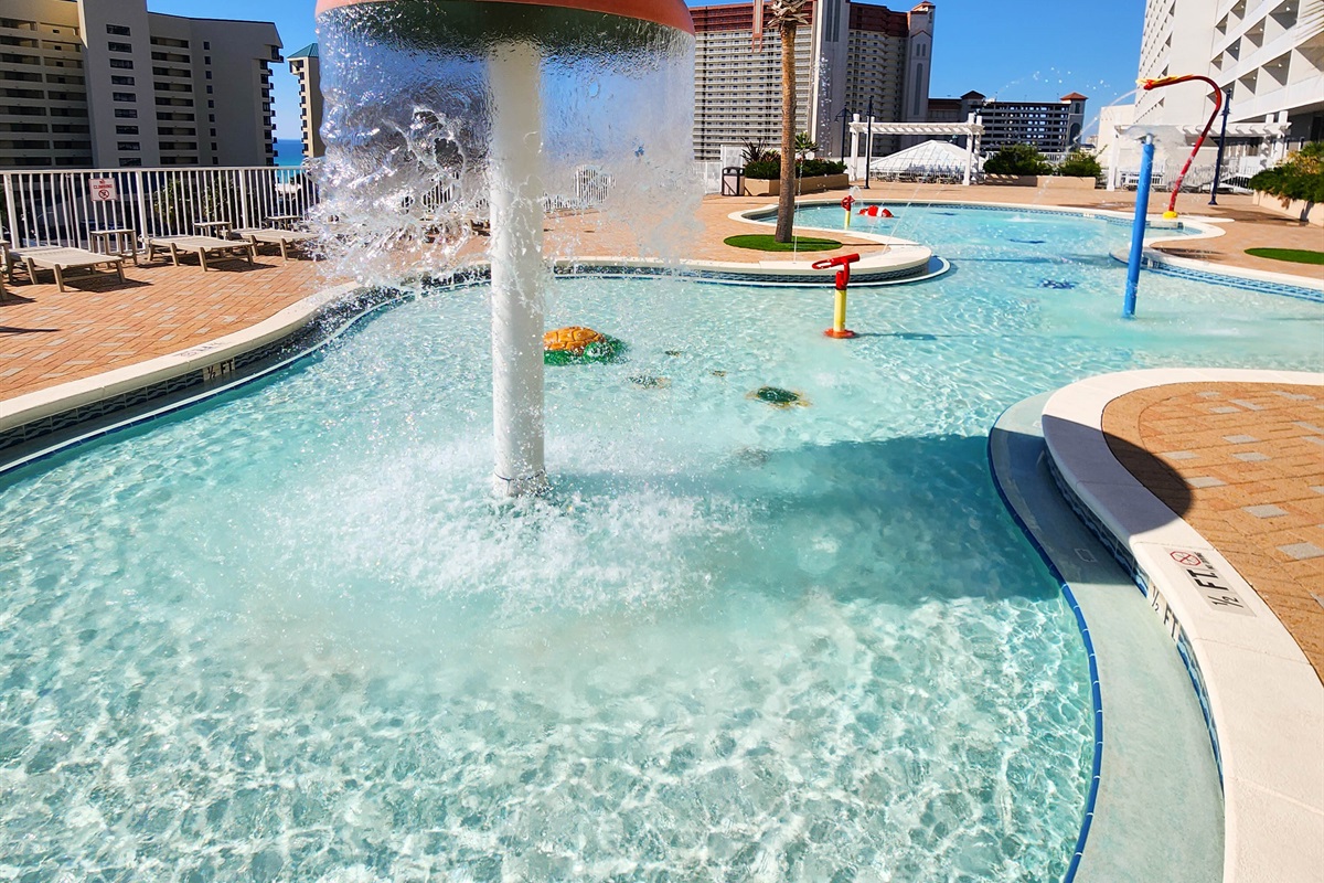 Phenomenal setting offering panoramic elevators, you cannot find anywhere else, heated pools, kiddie pools. Vegas style fountain show every night, you can enjoy from the privacy of your own balcony!
