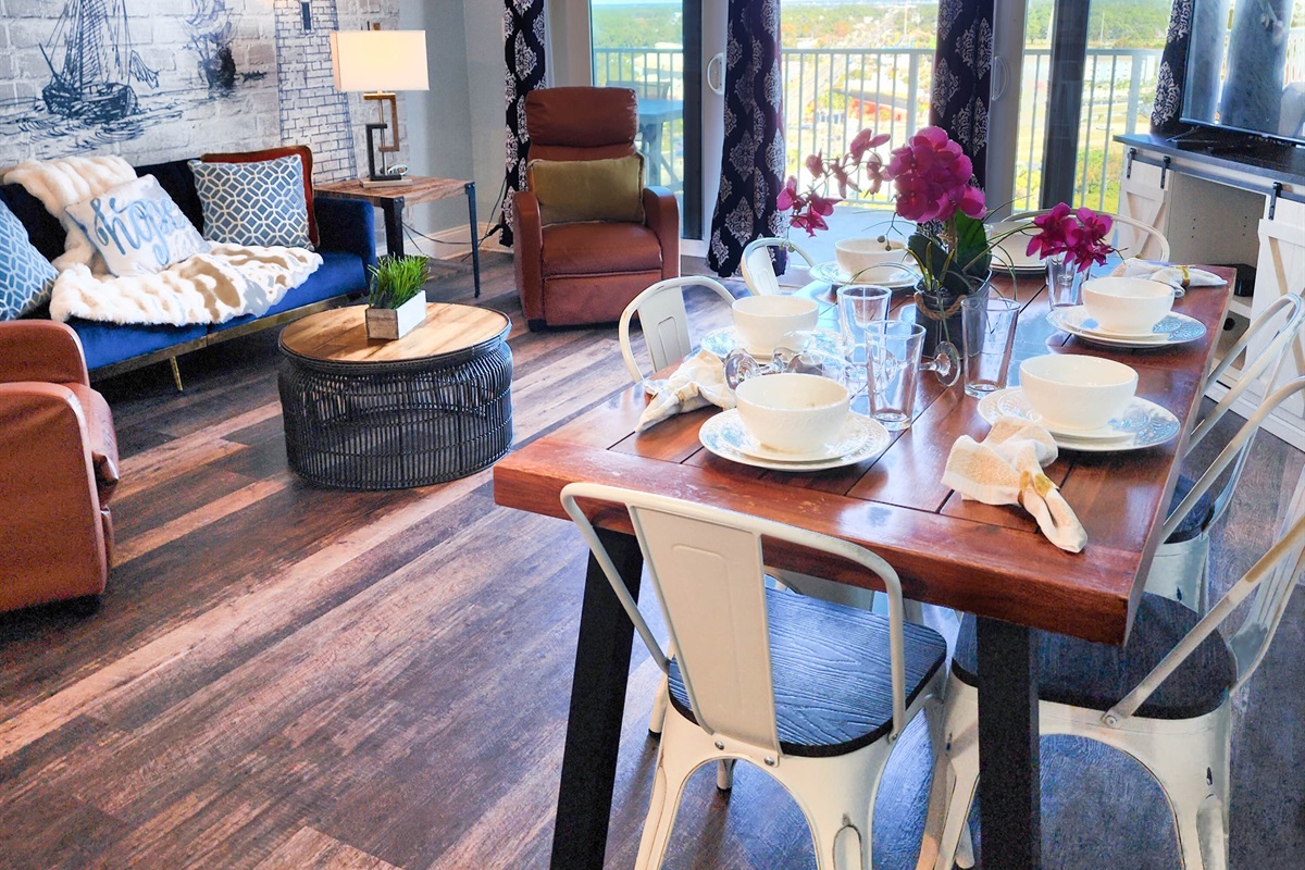 Completely Remodeled and Beautifully Furnished Condo, located within a short walk to the beach. Lake town Wharf offers THE Resort style vacation, from the five unique pools, 52,000 square feet of lakefront boardwalk, a fully equipped fitness center, covered parking, miniature golf, an on-site market/bistro, on-site dining options and flexible meeting spaces for conferences, to weddings and other group functions. There is really no reason to leave, other than the beach experience you can find across the street.