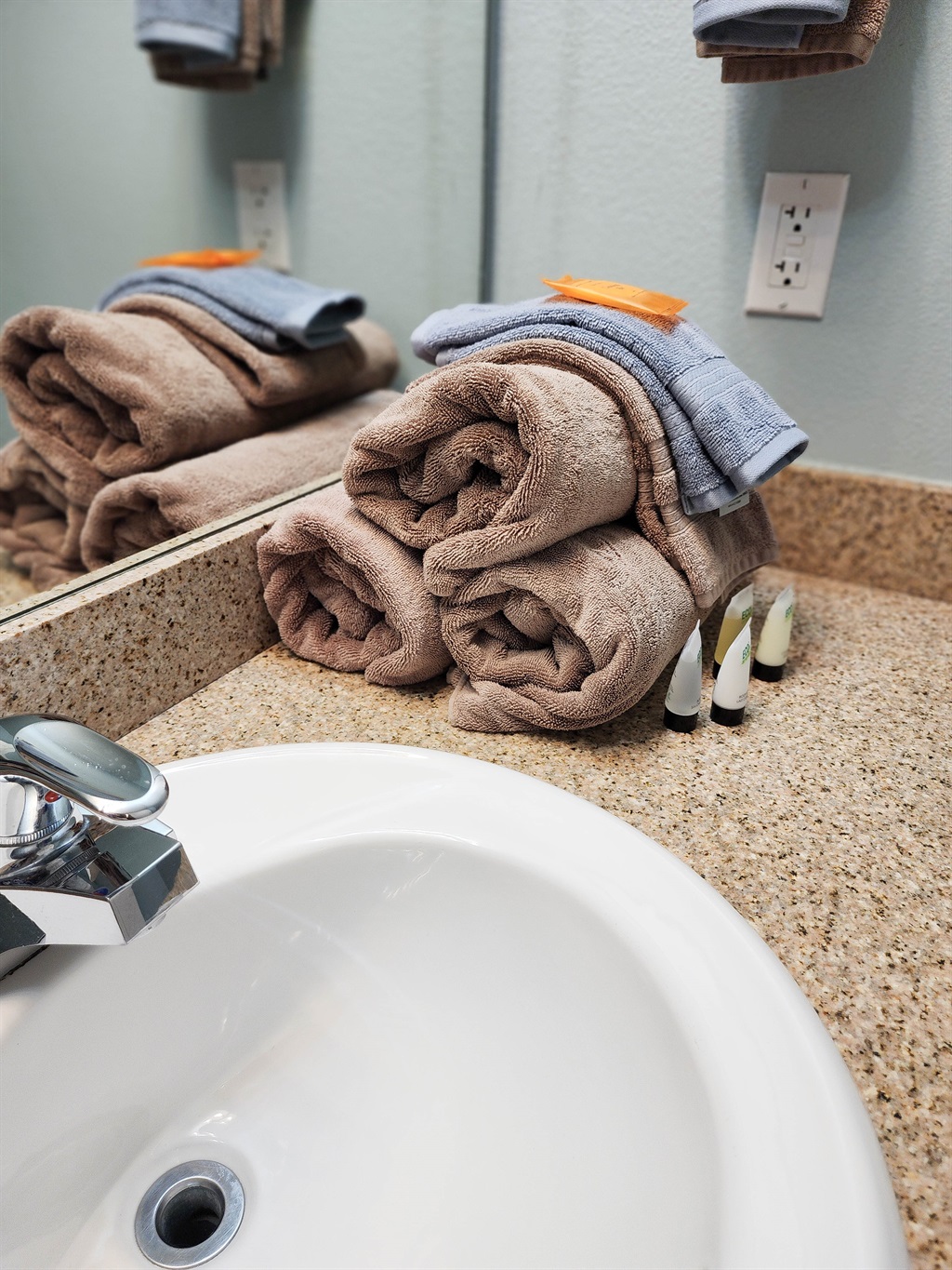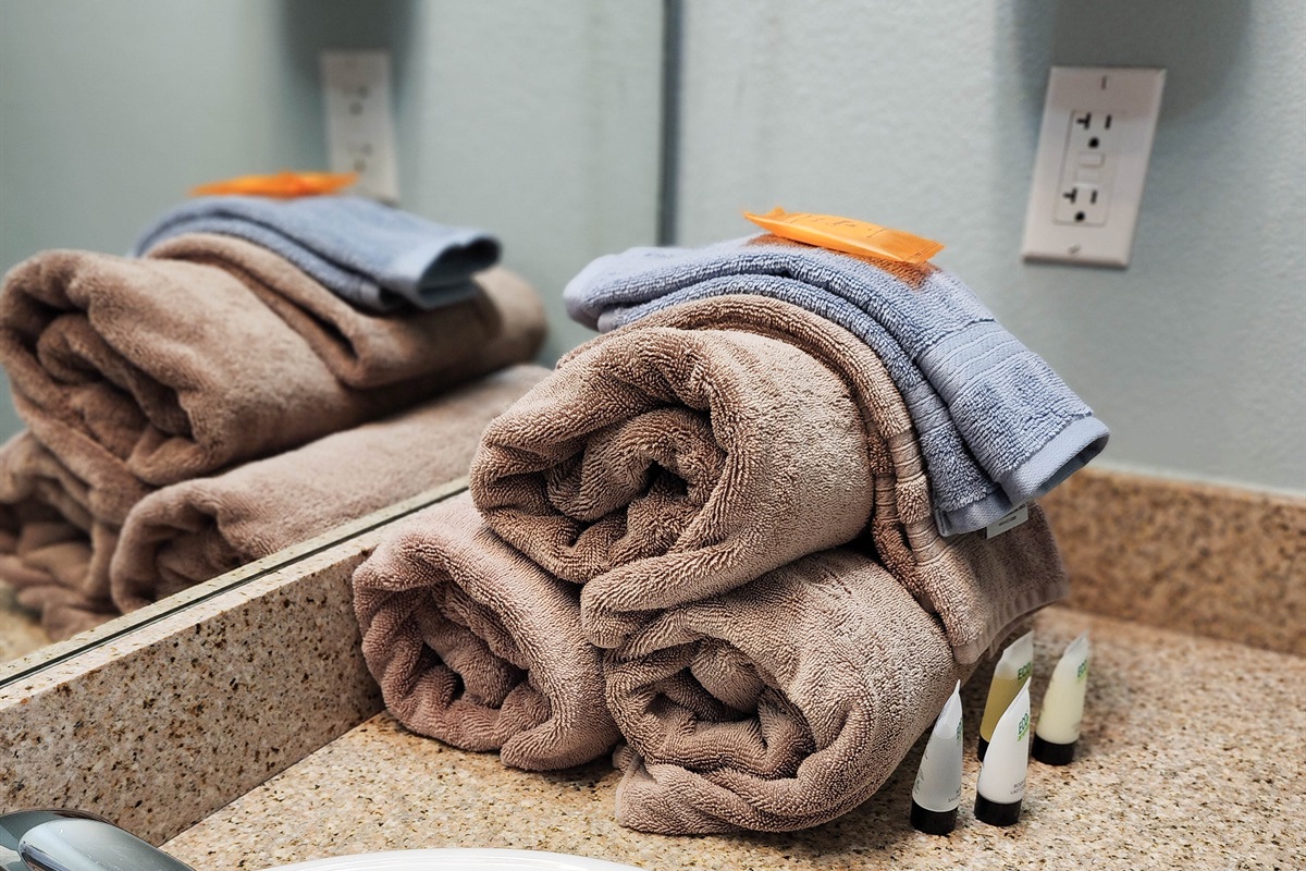The unit has a full size washer and dryer, so you never run out of fresh towels.