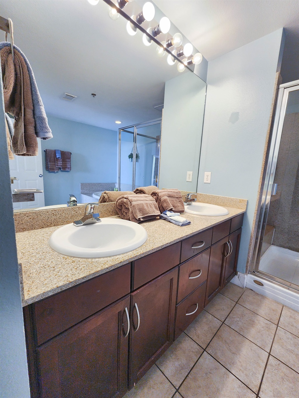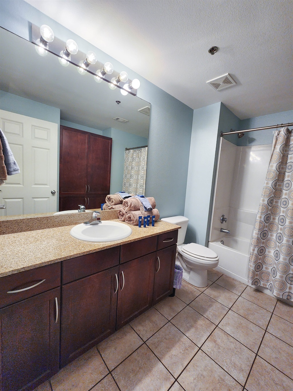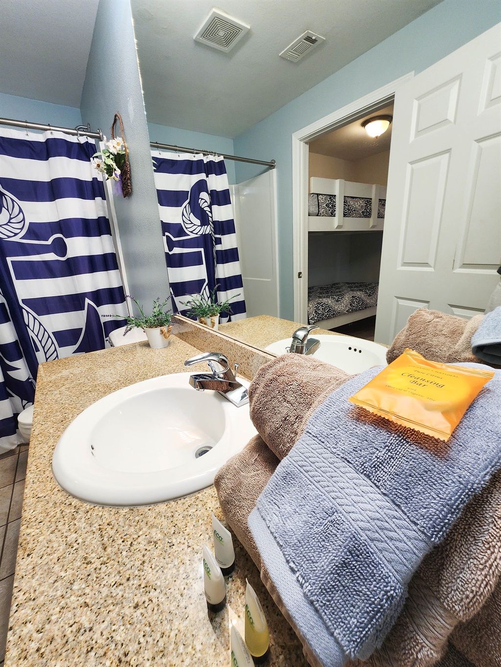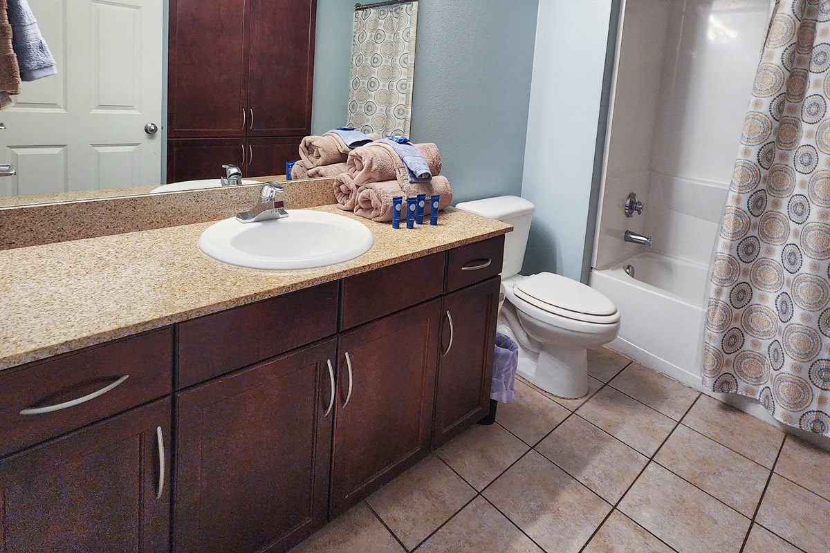 The unit is very spacious, offering 3 large bedrooms. The main master has a very large en suite bathroom, private balcony overlooking the Vegas style Fountain show that plays every night and an extremely comfortable bed. The bunk area is located in its own nook, where kiddos can enjoy some game time on their own.