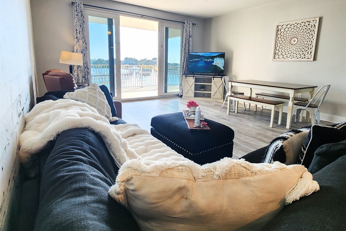 Completely Remodeled and Beautifully Furnished Condo, located directly across from the within a short walk to the beach. Lake town Wharf offers THE Resort style vacation, from the five unique pools, 52,000 square feet of lakefront boardwalk, a fully equipped fitness center, covered parking, miniature golf, an on-site market/bistro, on-site dining options and flexible meeting spaces for conferences, to weddings and other group functions. There is really no reason to leave, other than the beach experience you can find across the street.