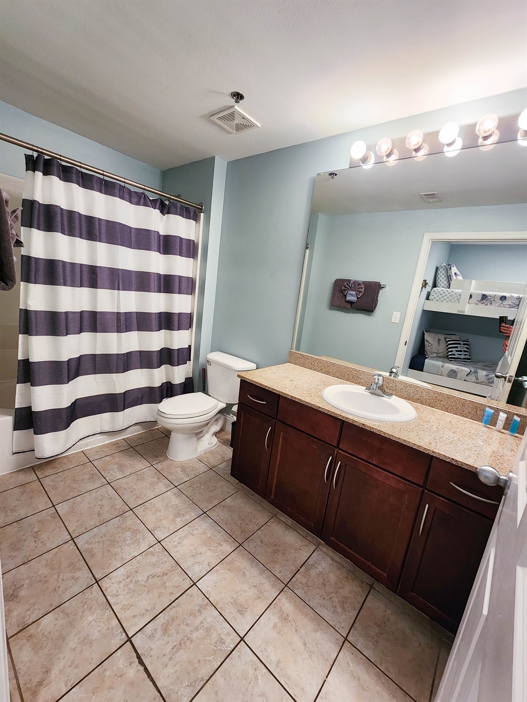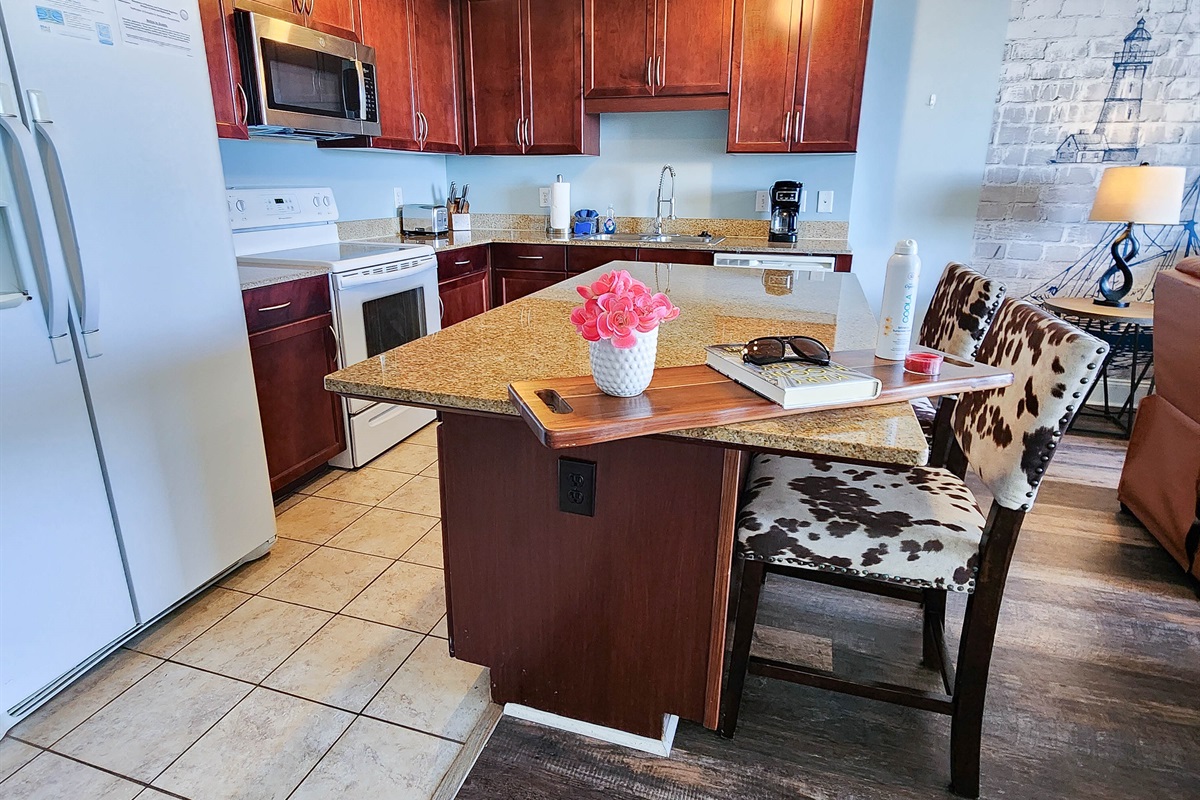 The unit has been decorated extremely tastefully and no expense has been spared for the comfort of our guests. The kitchen is fully equipped with everything you will need. Themaster bedroom has an extremely comfortable King Bed and en suite Bathroom. The bunk area is secluded and has brand new mattresses and a private bathroom. The living area is extremely spacious and open, it offers a sleeper sofa couch and brand new furniture for he ultimate luxury feel. The condo is 1050 sq.ft