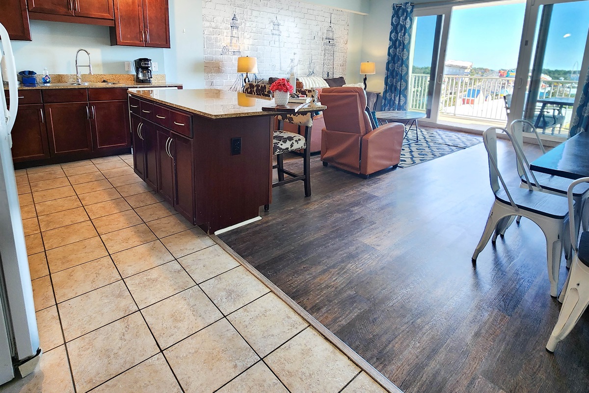 Completely Remodeled and Beautifully Furnished Condo, located within a short walk to the beach. Lake town Wharf offers THE Resort style vacation, from the five unique pools, 52,000 square feet of lakefront boardwalk, a fully equipped fitness center, covered parking, miniature golf, an on-site market/bistro, on-site dining options and flexible meeting spaces for conferences, to weddings and other group functions. There is really no reason to leave, other than the beach experience you can find across the street.