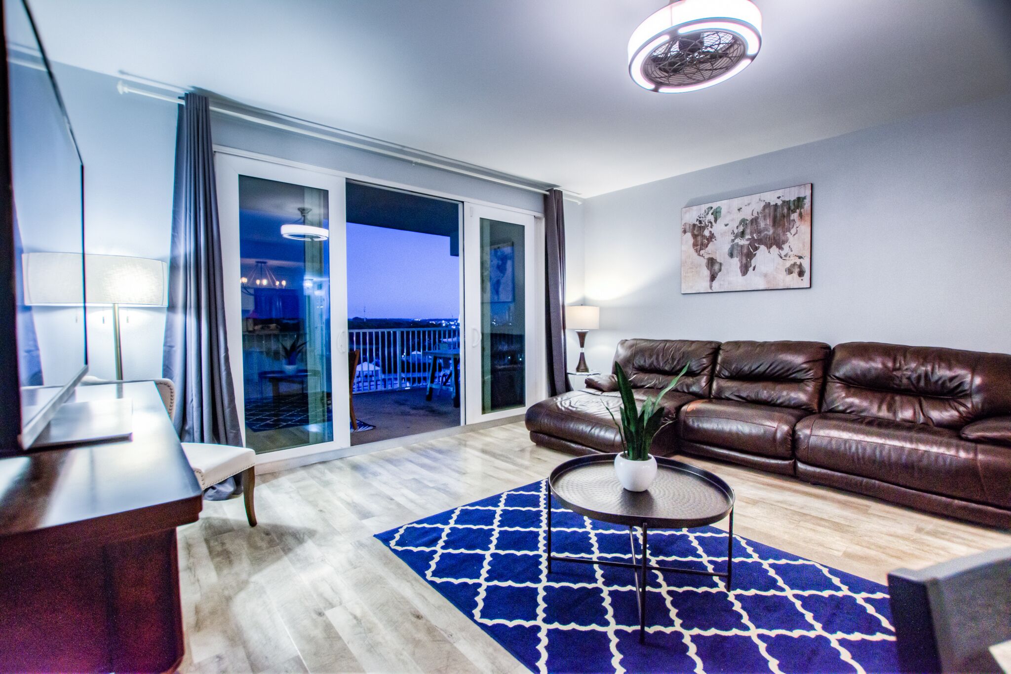 The unit is very spacious, offering 3 large bedrooms. The main master has a very large an suite bathroom, private balcony overlooking the Vegas style Fountain show that plays every night and an extremely comfortable bed. The bunk area is located in its own nook, where kiddos can enjoy some game time on their own.