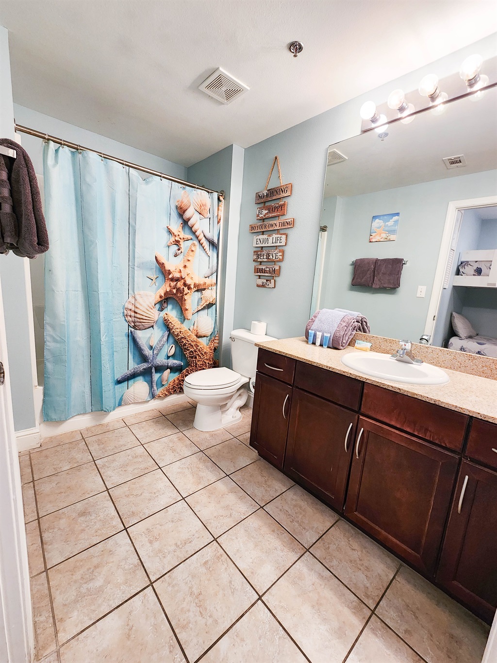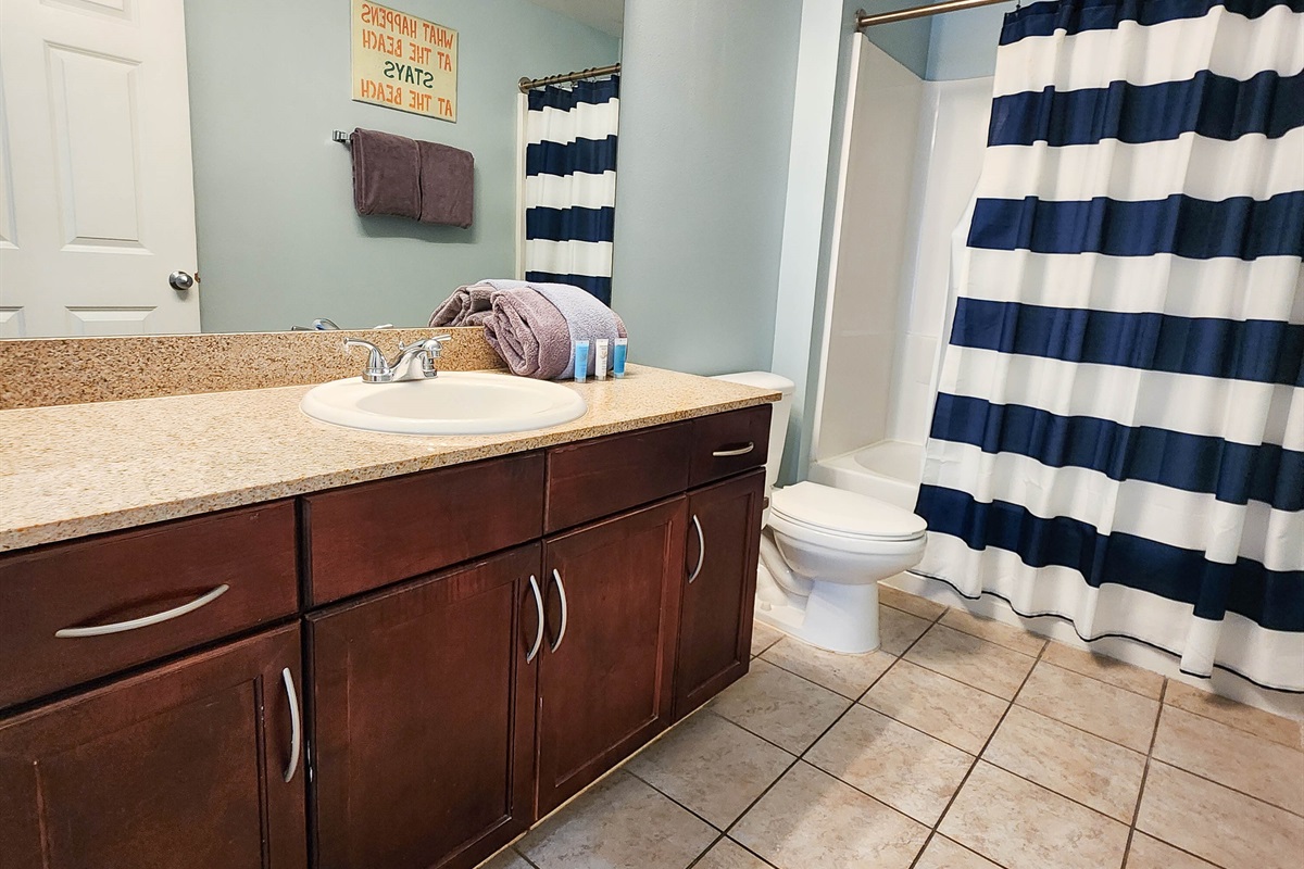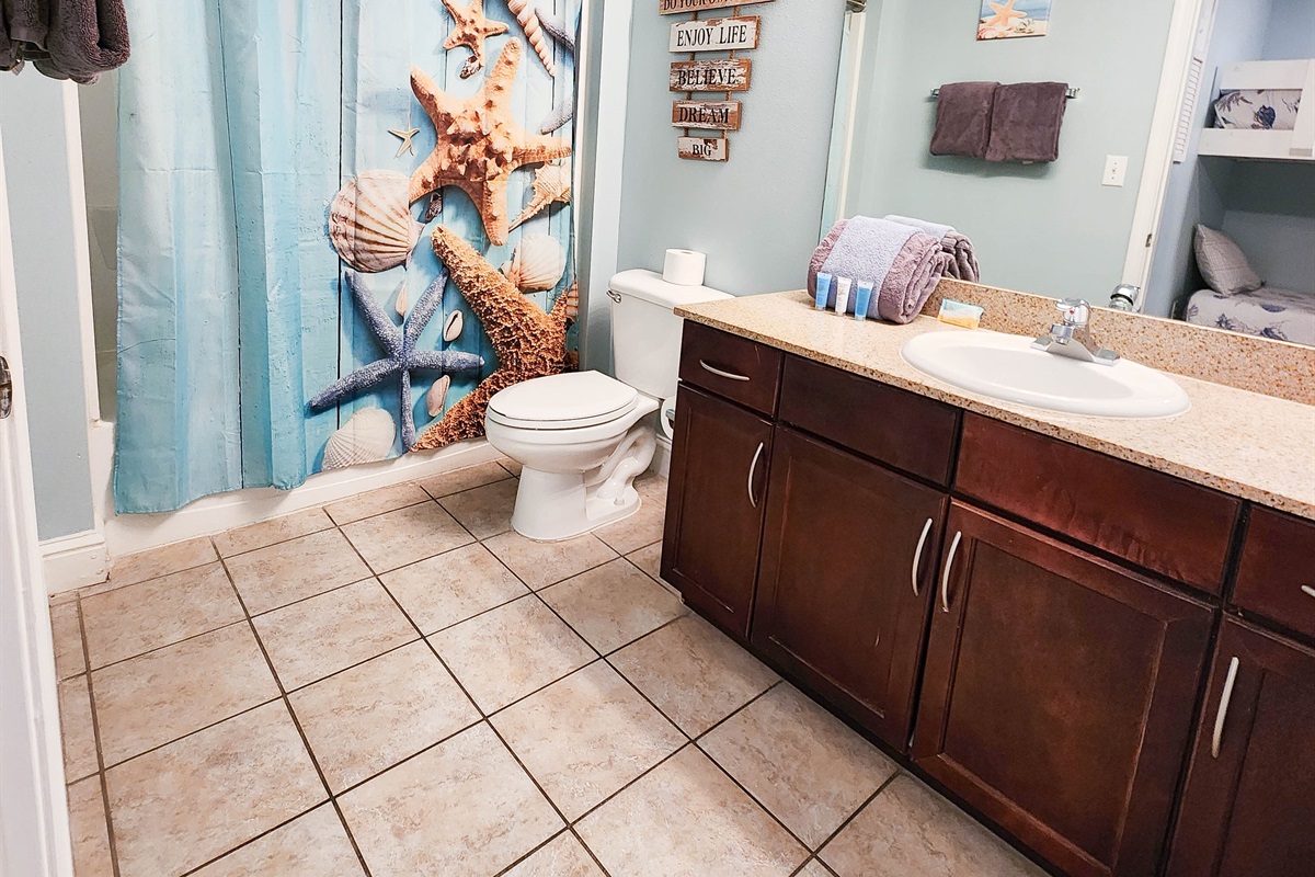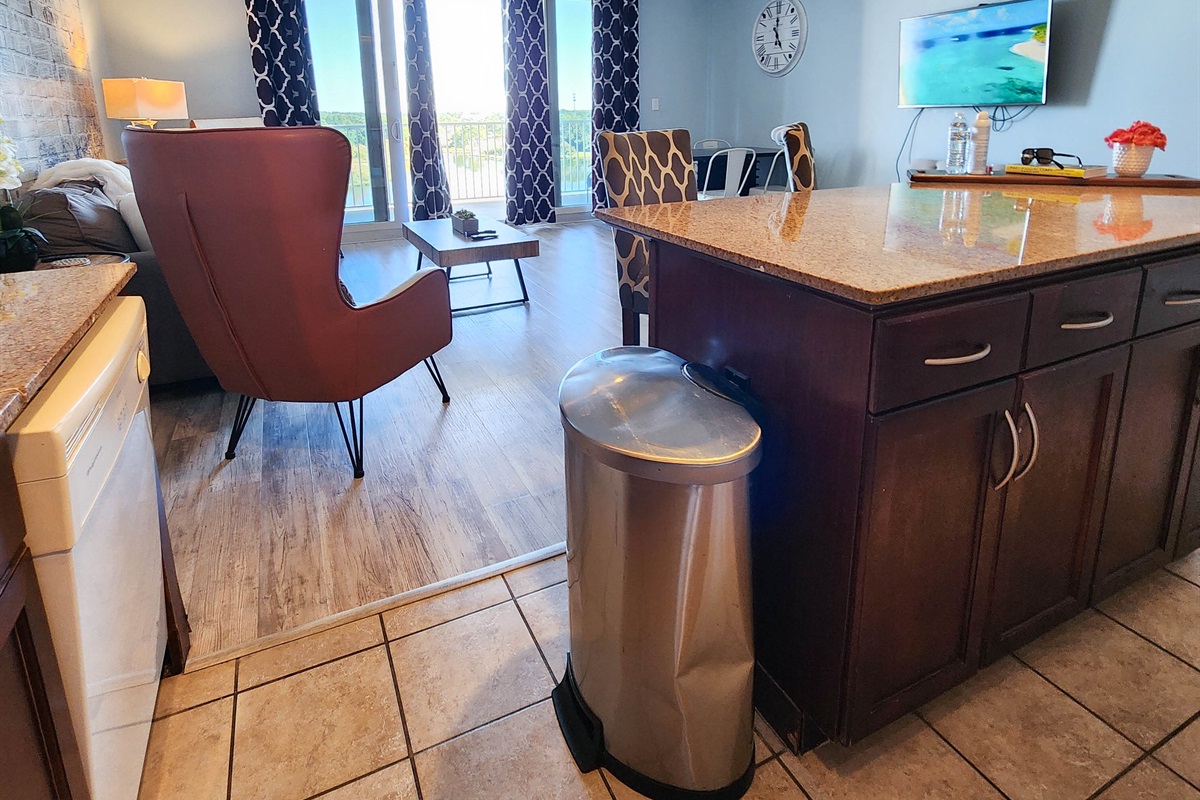 The unit has been beautifully decorated and offers the perfect setting for a beach getaway. You will find this spacious kitchen to flow perfectly with the open and spacious living room. The comfort of the fluffy furniture and the clean design will make you feel at home. The kitchen is very well stocked, it offers anything and everything you may need to cook a three course meal. the bunk area is secluded and has a private bathroom accessible right across. The master suite has the most comfortable bed and perfect shades to guarantee a good night sleep after a long day at the beach. The private master bathroom and extra large closet space complete the perfect ambience for comfortable stay.