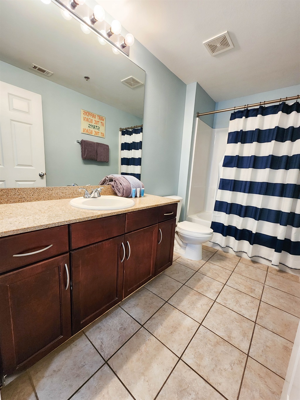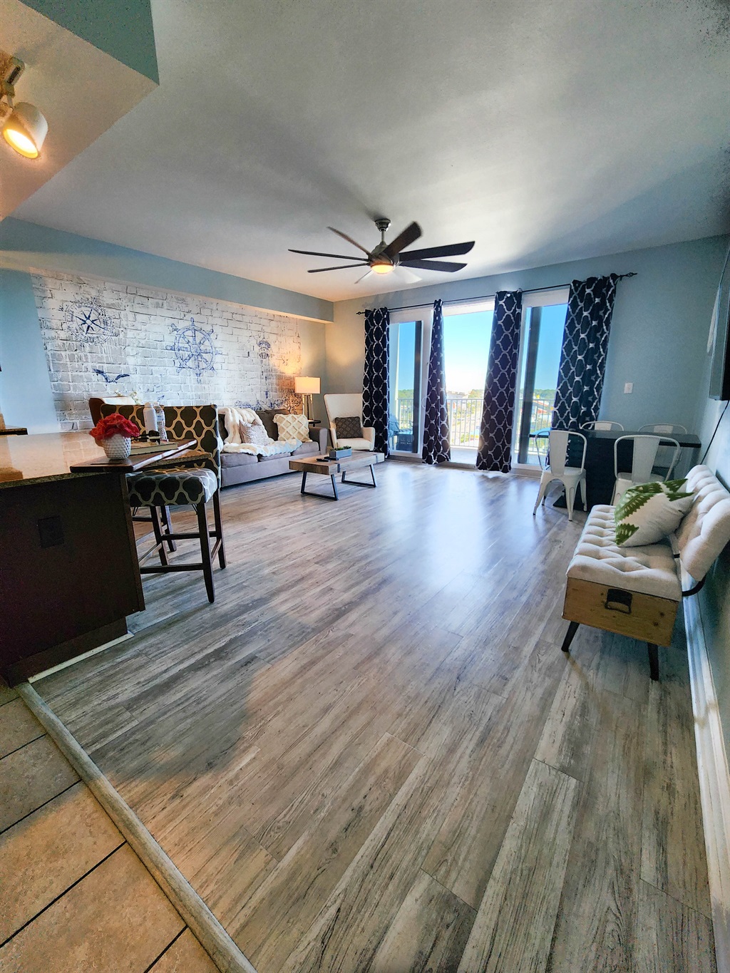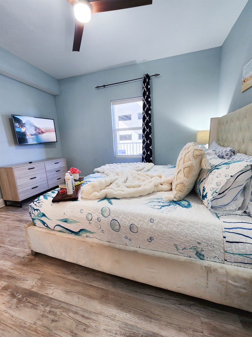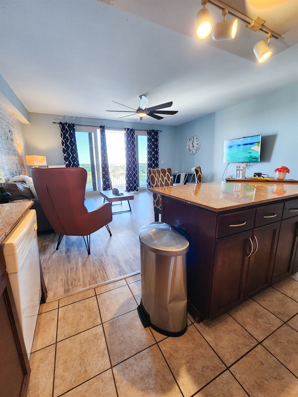 The unit has been beautifully decorated and offers the perfect setting for a beach getaway. You will find this spacious kitchen to flow perfectly with the open and spacious living room. The comfort of the fluffy furniture and the clean design will make you feel at home. The kitchen is very well stocked, it offers anything and everything you may need to cook a three course meal. the bunk area is secluded and has a private bathroom accessible right across. The master suite has the most comfortable bed and perfect shades to guarantee a good night sleep after a long day at the beach. The private master bathroom and extra large closet space complete the perfect ambience for comfortable stay.