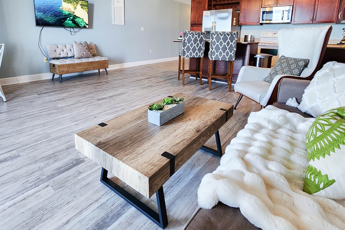 The unit has been decorated extremely tastefully and no expense has been spared for the comfort of our guests. The kitchen is fully equipped with everything you will need. The master bedroom has an extremely comfortable King Bed and en suite Bathroom. The bunk area is secluded and has brand new mattresses and a private bathroom. The living area is extremely spacious and open, it offers a sleeper sofa couch and brand new furniture for he ultimate luxury feel.