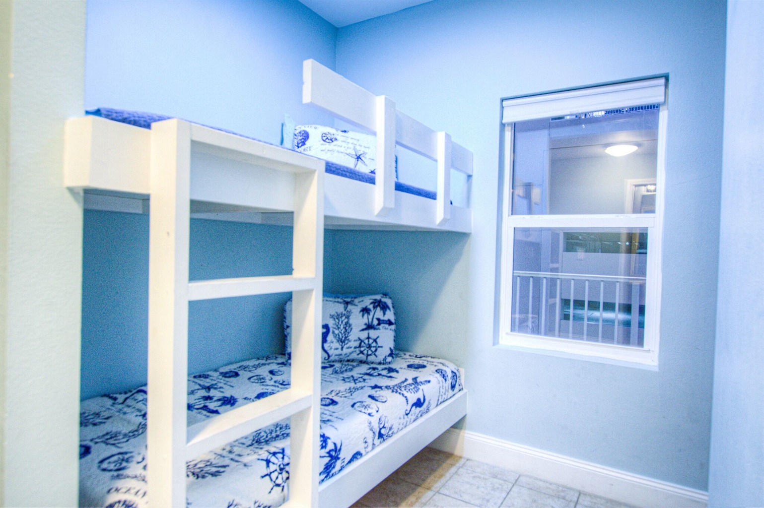 The unit has been beautifully decorated and offers the perfect setting for a beach getaway. You will find this spacious kitchen to flow perfectly with the open and spacious living room. The comfort of the fluffy furniture and the clean design will make you feel at home. The kitchen is very well stocked, it offers anything and everything you may need to cook a three course meal. the bunk area is secluded and has a private bathroom accessible right across. The master suite has the most comfortable bed and perfect shades to guarantee a good night sleep after a long day at the beach. The private master bathroom and extra large closet space complete the perfect ambience for comfortable stay.