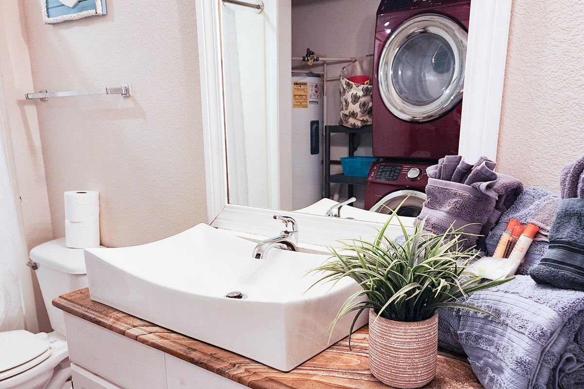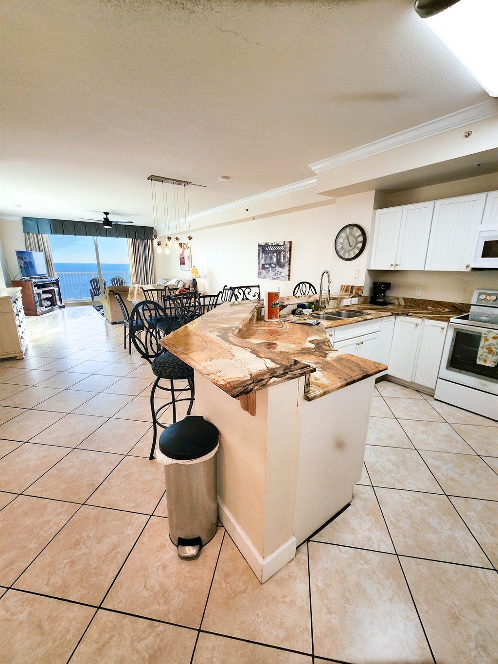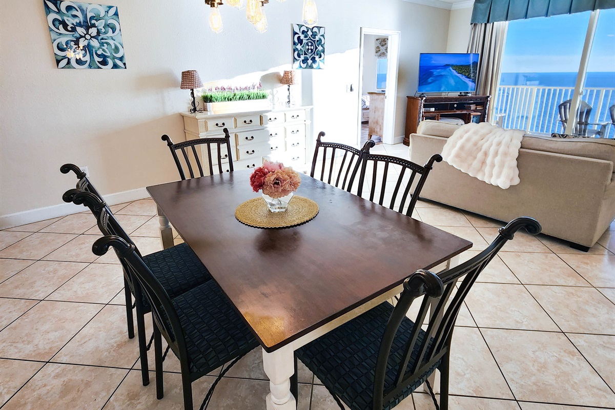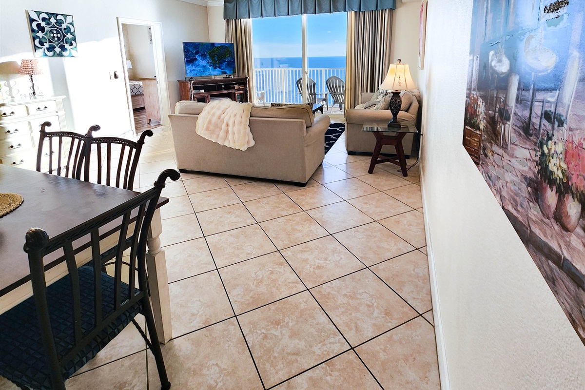 The living room is very roomy, so everyone can sit together and enjoy the breathtaking views. The unit has a full size washer and dryer.